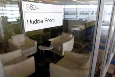 Featured in the new Biogen Idec buildings will be huddle rooms that officials hope will encourage unplanned meetings.