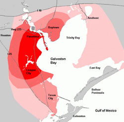 The Galveston Bay Area is a region that surrounds the Galveston Bay estuary of Southeast Texas in the United States within the Houston–Sugar Land–Baytown metropolitan area. Residents of Houston and surrounding areas typically call it simply the "Bay Area". Normally the term refers to the mainland communities around the bay and excludes...